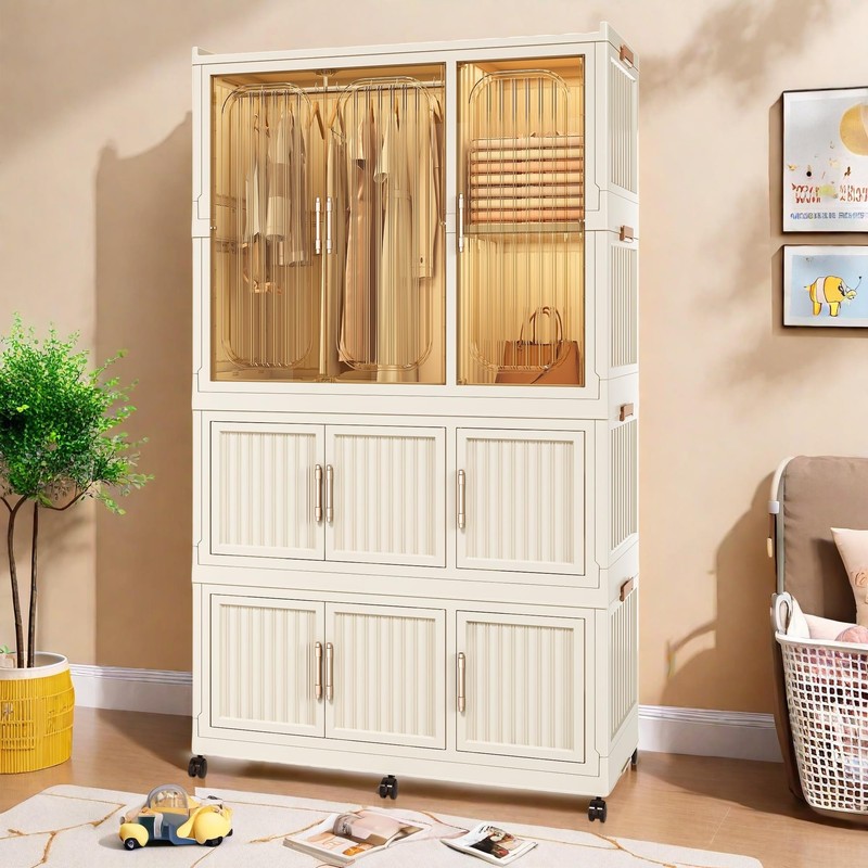 - 【Versatile & Mobile Storage Solution】 This collapsible wardrobe can be used as a closet, storage unit, toy organizer, or even a shoe rack depending on your needs. The upper and lower sections can be used separately, offering flexibility as a standalone wardrobe or toy box. Equipped with wheels, it can be moved effortlessly between rooms.