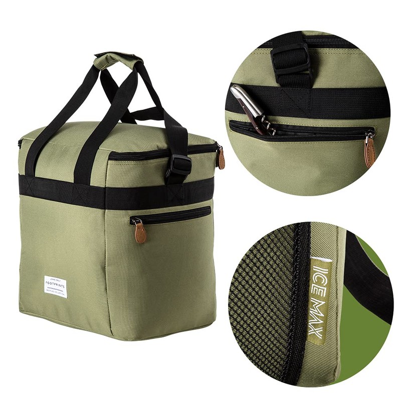 Leave Only Footprints Picnic Insulated Cooler Bag. Made from RPET Recycled Material (28 Litre, Olive Green)