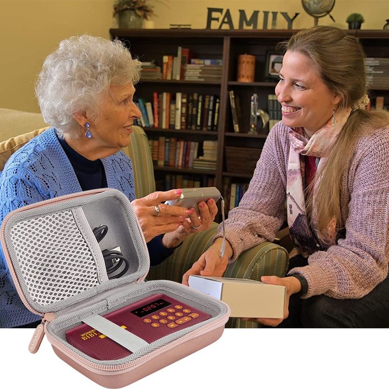 • Portabilidad: el interior está provisto de una banda elástica fija, que puede fijar el reproductor de audio de la Biblia de golpes y caídas, y es seguro y confiable para proteger. El diseño del cinturón de malla de la caja del reproductor de Biblia de audio puede clasificar y almacenar eficazmente accesorios de almacenamiento portátiles
