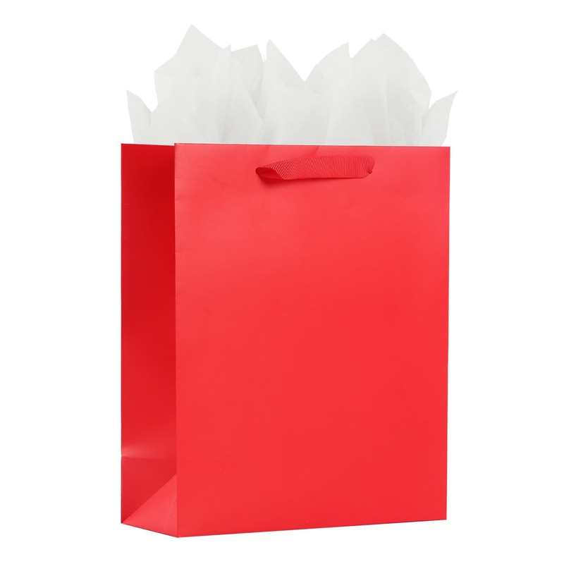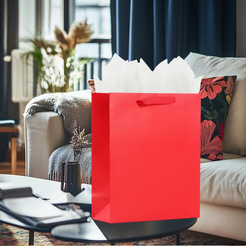 - [Package]: This large red gift bag include 2 sheets of tissue paper and 1 red gift bags,perfect for a variety of Christmas birthday party and anniversary wrapping need