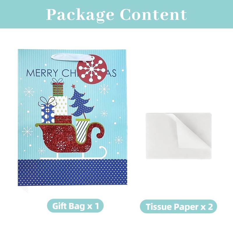 - [Package]: This large Christmas gift bag include 2 sheets of tissue paper and 1 Christmas gift bags,perfect for a variety of Christmas birthday party and anniversary wrapping need