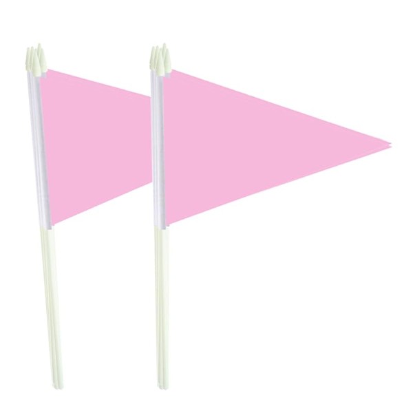 Lebei 12Pack Small Pink Pennant Stick Flag Mini Triangle Blank DIY Graffiti Hand Held 5x8 Inch Flags with Solid Pole