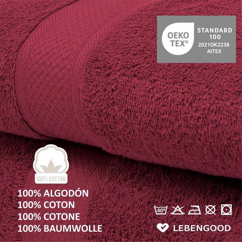 - OEKO-TEX CERTIFIED: We know how important your family is to you. CERTIFICATE LEBENGOOD with this certificate guarantees that our towels are chemical free and are made from 100% American terry cloth.