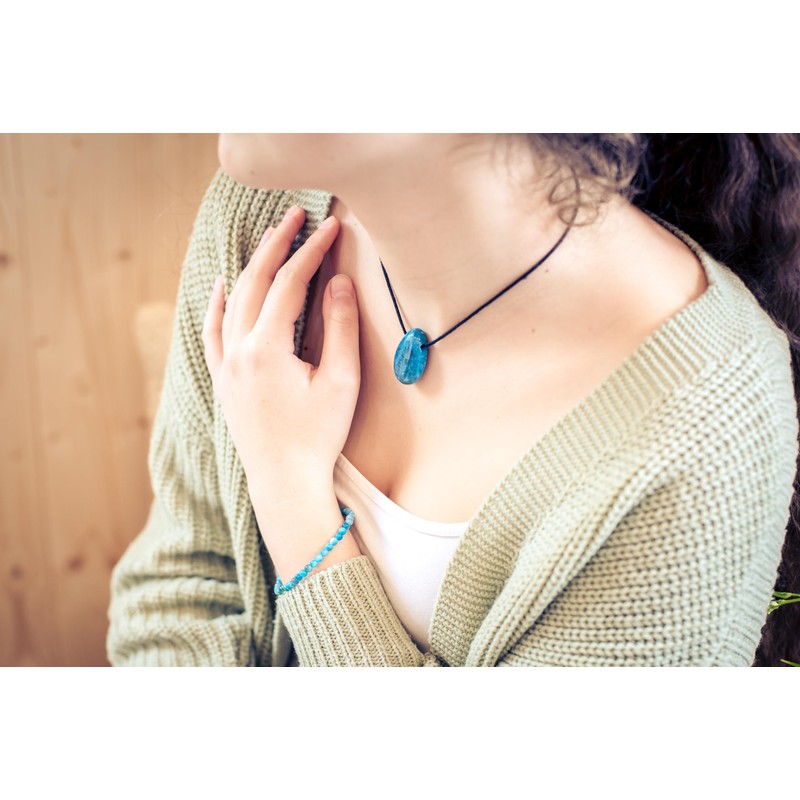 Lebensquelle Plus Apatite Drop Pendant | Drilled Tumbled Stone Pendant with Cotton Cord | High-Quality Gemstone Pendant, Half gemstone, Apatite
