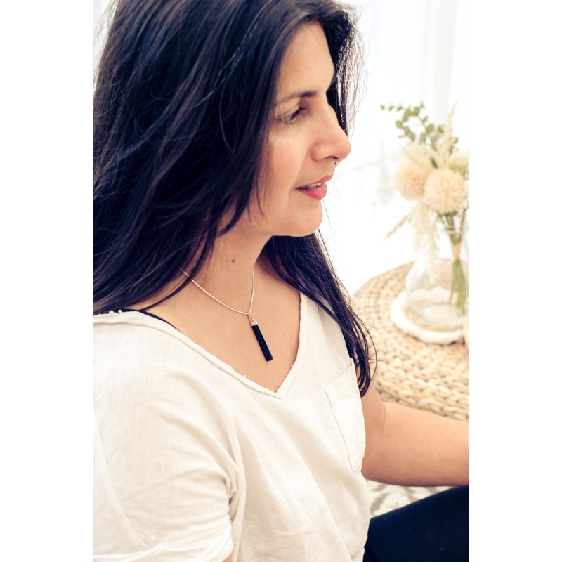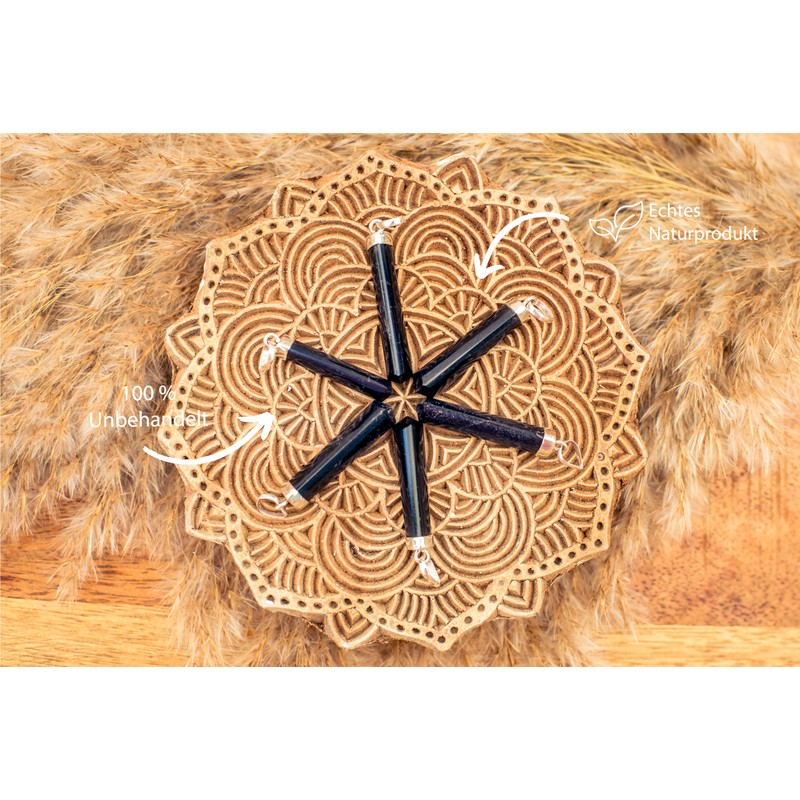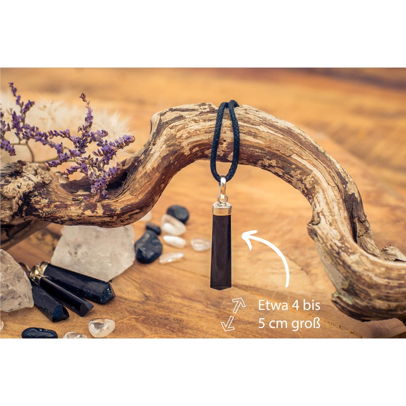 Lebensquelle Plus Black Tourmaline/Schorl Polished Tip Elegant Gemstone Pendant 925 Silver Cap + Eyelet, Stainless Steel, Tourmaline