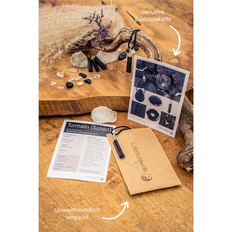 - Includes a gemstone card. A lovingly designed gemstone card on black tourmaline with all useful information about the zodiac sign, chakra and the said healing effects is also included. With this card, you can effortlessly figure out how to best use this versatile healing stone.