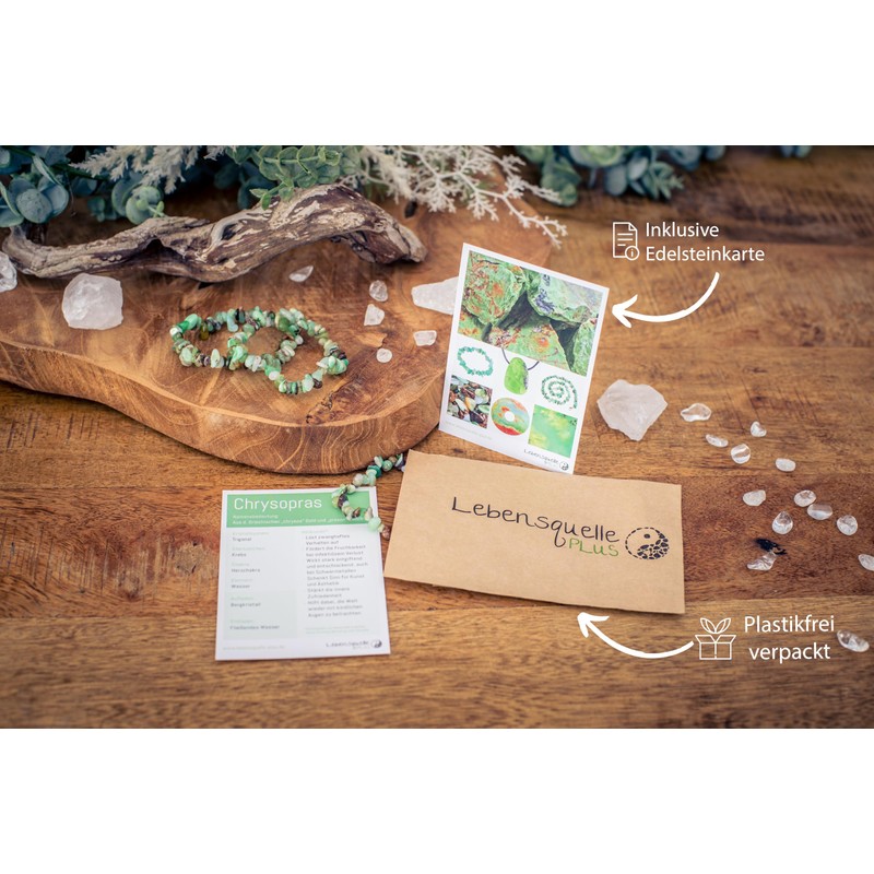 • Includes a gemstone card: a lovingly designed gemstone card for chrysoprase with all useful information about the zodiac sign, chakra and the said healing effects is also included.