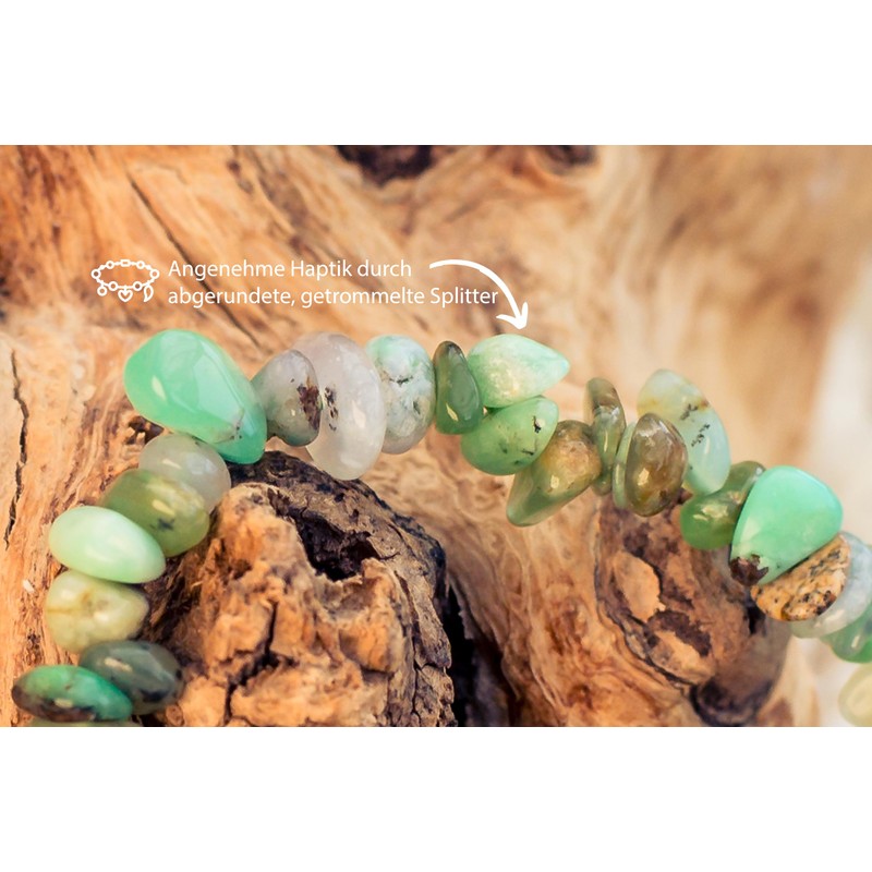 • Natural charm: this splinter bracelet is a tribute to the raw beauty of nature, made from real chrysoprase tumbled stones, whose splinters shine in a variety of green tones.