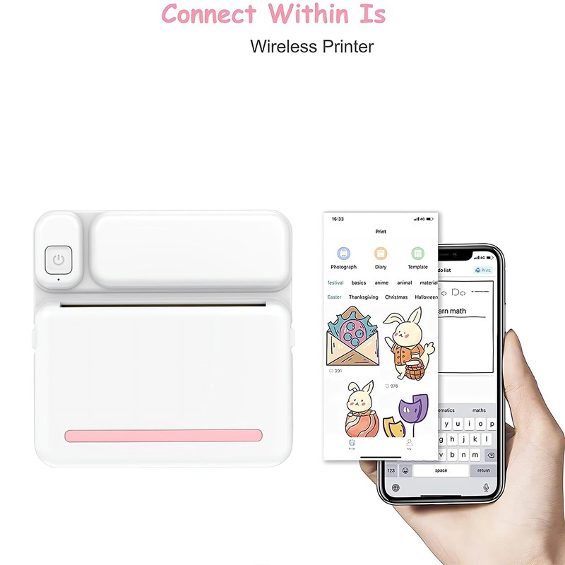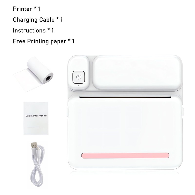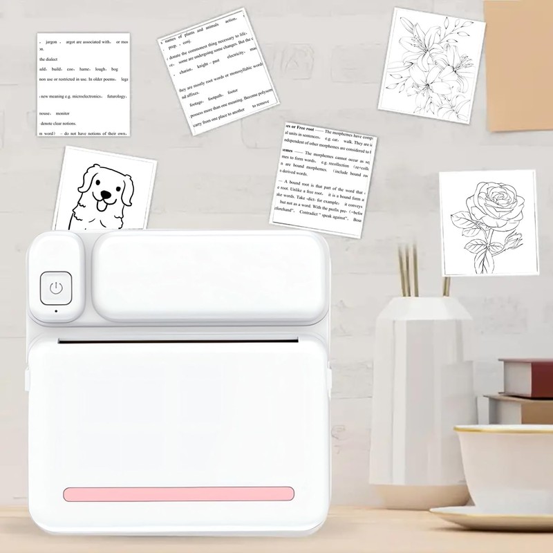 • Convenient Mini Printer:This portable multifunctional inkless printer is compact and suitable for mothers who want to print text, or stickers anytime, anywhere.Built-in 1203mAh rechargeable battery that can last for up to a week. Whth its mini design,it can easily fit into your pocket, making it the perfect gift for children and adults.