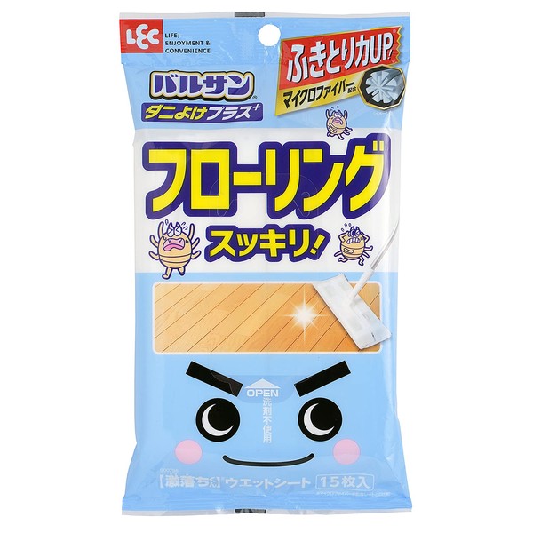 LEC Gekochi-kun & Balsan Dust Mite Protection Plus Flooring Wet Sheet, 15 Sheets, Microfiber Blended Wiping Strength