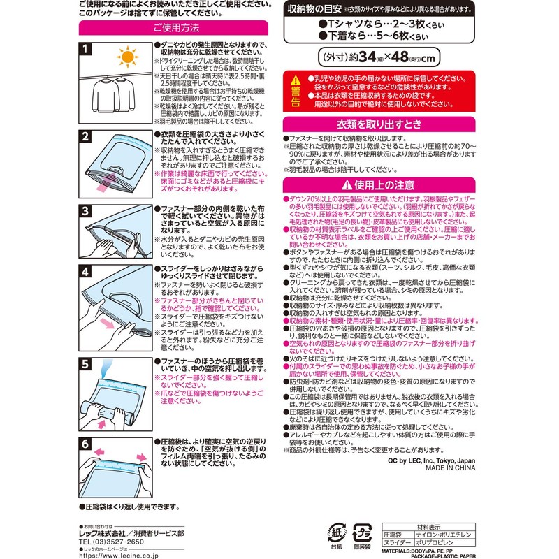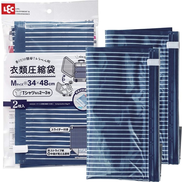LEC H00220 Vacuum Cleaner No Vacuum Needed Clothing Compression Bag, Medium Size, 13.4 x 18.9 inches (34 x 48 cm), 2 Pieces, Easy to Roll Up