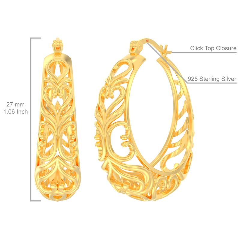 - MADE IN GOLD OVER STERLING SILVER: These Heart Filigree Design Hoop Earrings are Made of Real 925 Sterling Silver and come with a '925' sterling silver stamp as a symbol of product quality. All LeCalla Sterling Silver Earrings have perfect shine and finish. Sterling silver is hypoallergenic and nickel-free making this a great choice for those with very sensitive skin.