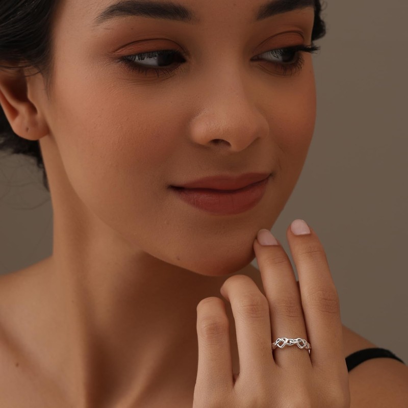 LeCalla 925 Sterling Silver Heart Knot Rings for Women Hypoallergenic Ring for Teens Size - 8