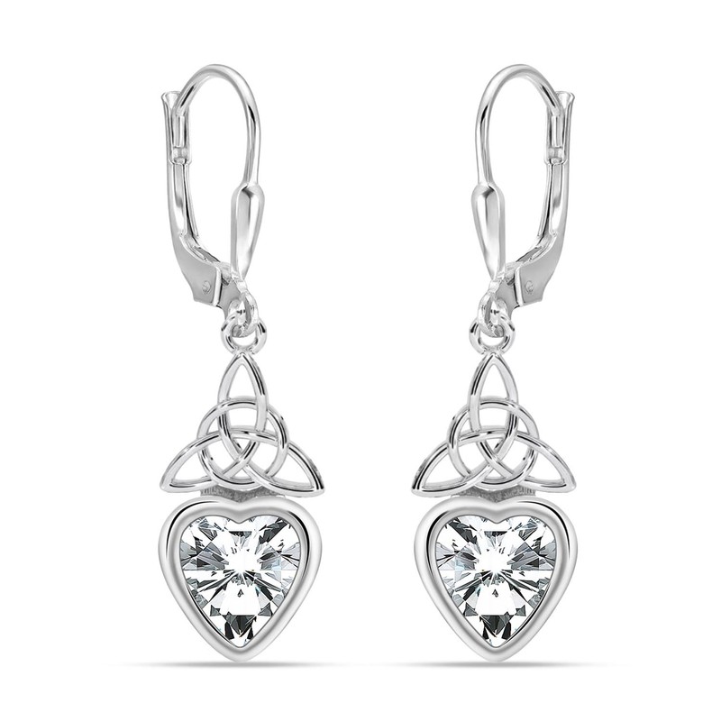 LeCalla Valentines Day Gifts 925 Sterling Silver Celtic Knot Earrings | Heart-Shaped CZ Leverback Earrings | Women's Drop & Dangle Earring | Teardrop Leverback Heart Earrings - 35MM
