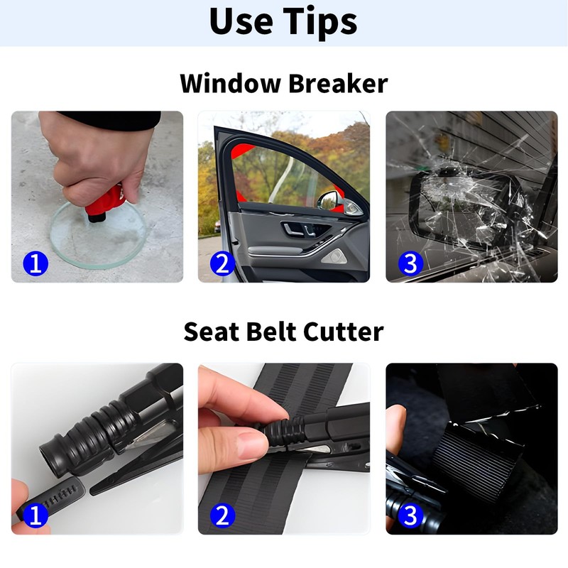 The combination of whistle, seat belt cutter, and glass breaker makes these car emergency tools a valuable addition to any car.