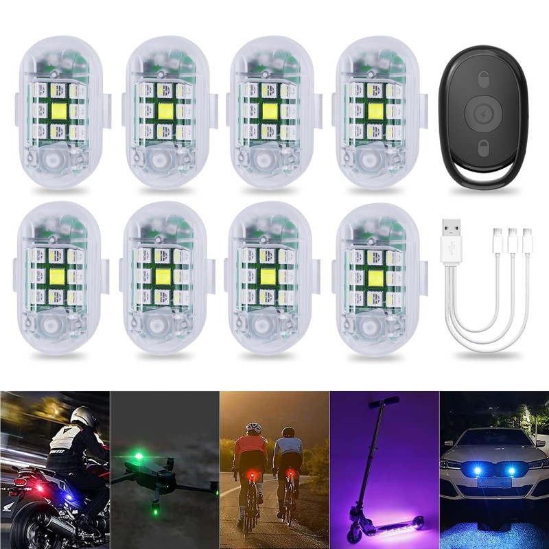 LECART 8 Pcs Remote Control Strobe Lights Wireless Led Anti Collision Lights Rechargeable High Brightness LED Light for Car Drone Bike Motorcycle Safety Flashing Light