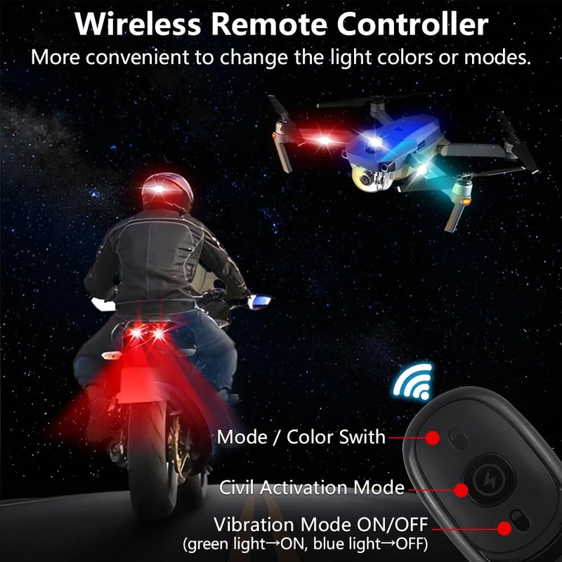 - Wide Applications: This high brightness wireless led strobe light not only suitable for Drone DJI Air 2S, Mini 2, Mavic Air 2, Mavic Mini, Mavic Pro, FPV, Holy Stone, but for cars, RC car, RC boat, E-bike, dirt bike, motorcycle, scooter, camping, fishing, hiking, truck emergency and etc.