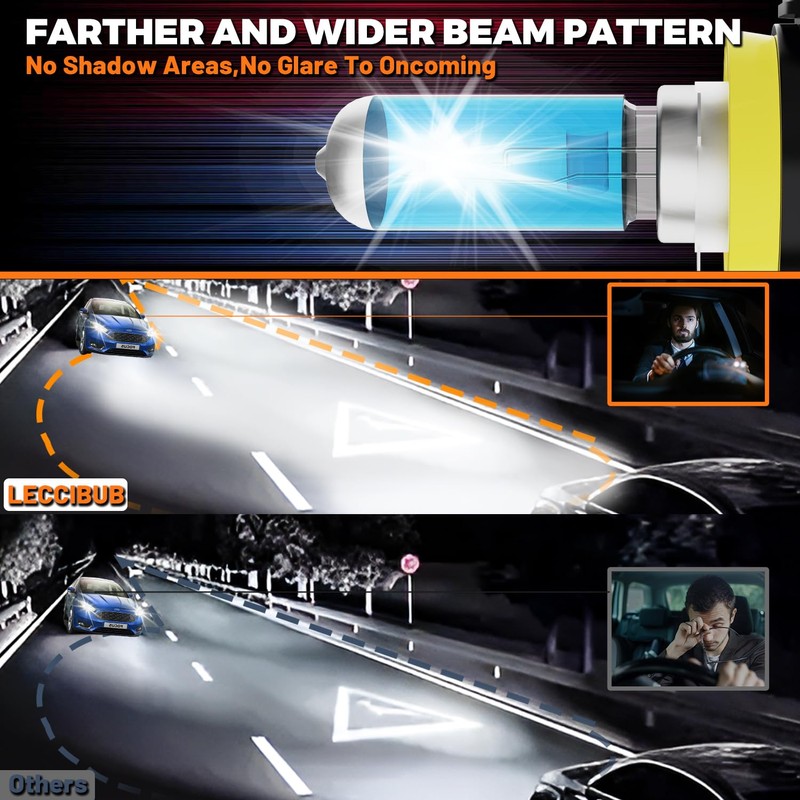 • 【200% Brighter Than Stock Halogen Bulbs】The H11 Fog light provide output of 5000 lumens.With white color temperature of 6000K that closely resembles natural daylight, these bulbs deliver a super bright beam pattern and provide 200% brighter than stock halogen bulbs.White light better reflects road signs and displays clearer road conditions.