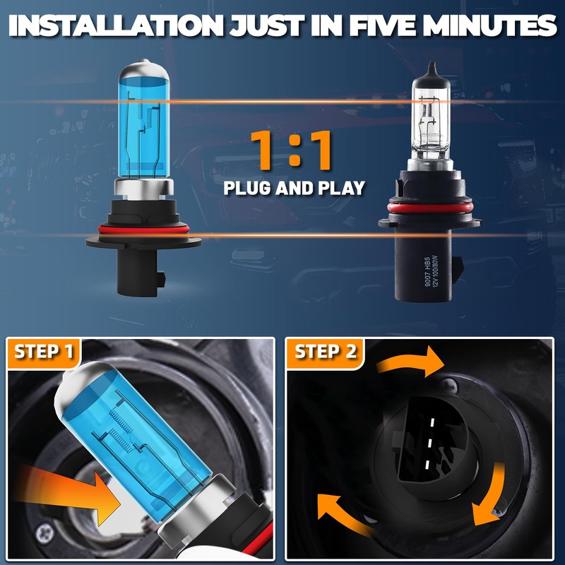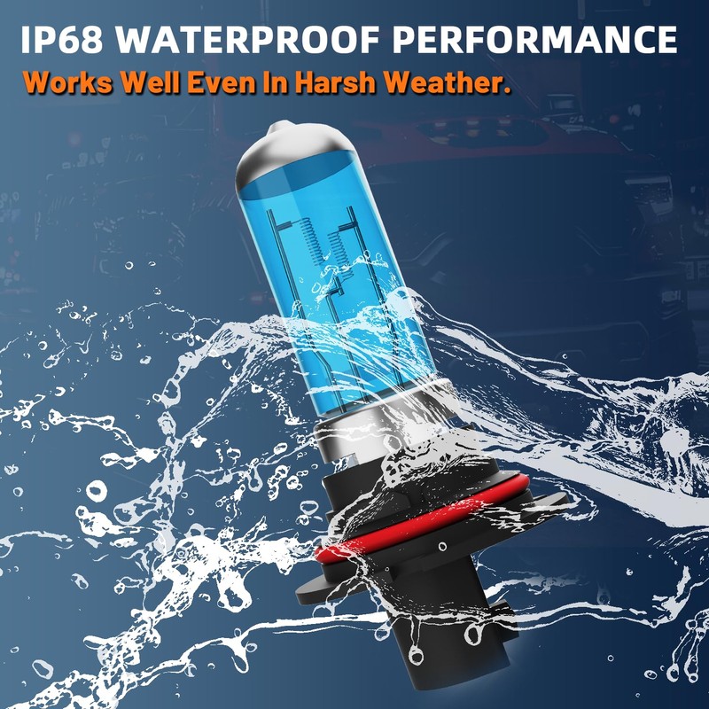 - 【Over 30,000 Hours Lifespan】The 9007 low high beam halogen bulb is filhalogen with Xenon gas, which helps helps to slow down the process of oxidizing the tungsten inside.9007 Halogen bulbs lifespan can reach more than 30,000 hours.With IP68 waterproof dustproof design,our hi/low beam Halogen bulb don't burn out or become damaged even in extreme weather,like fog/rain/overcast etc.