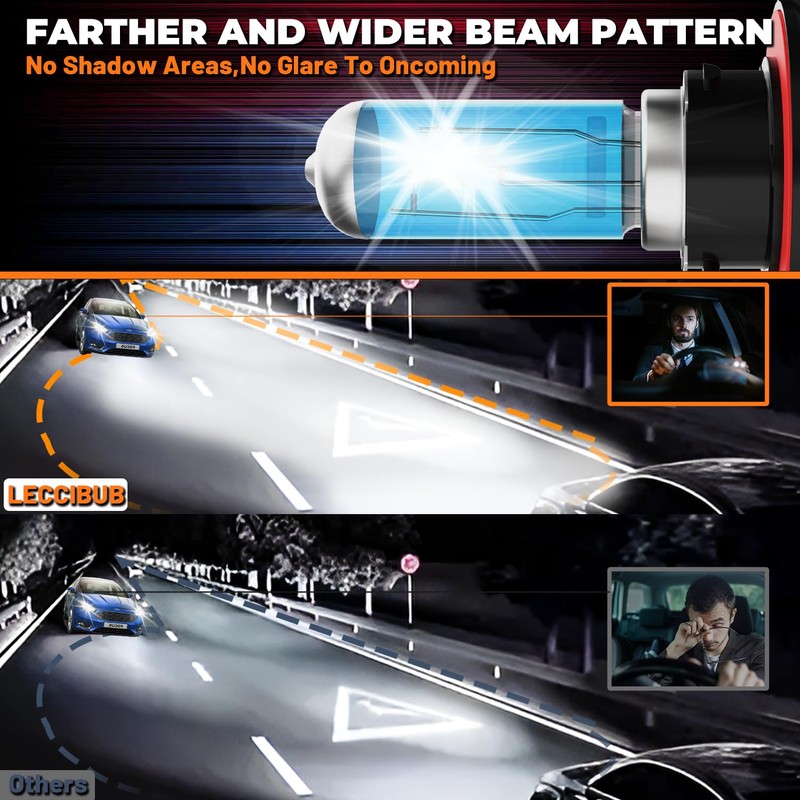 Widening angle visibility at night driving for spotting other road users or hazards.The further visibility increases response time, reducing risk of accidents.