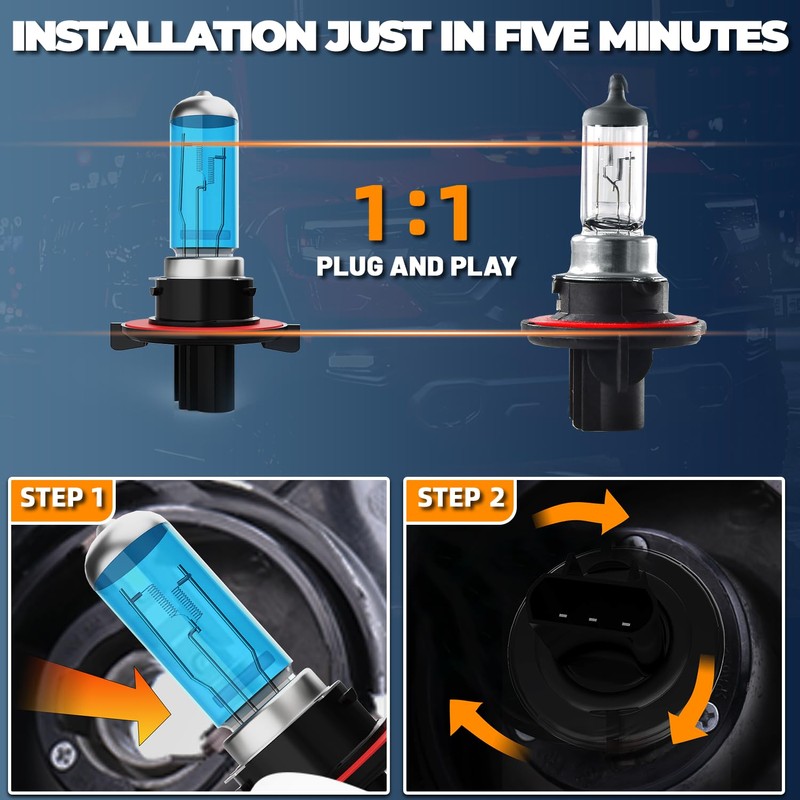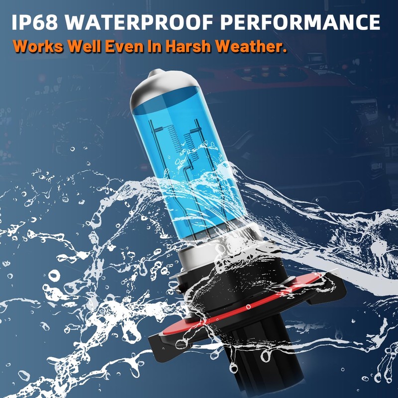- 【Over 30,000 Hours Lifespan】The 9008 low high beam Halogen Bulb is filhalogen with Xenon gas, which helps helps to slow down the process of oxidizing the tungsten inside.9008/H13 Halogen bulbs lifespan can reach more than 30,000 hours.With IP68 waterproof dustproof design,our hi/low beam Halogen bulb don't burn out or become damaged even in extreme weather,like fog/rain/overcast etc.