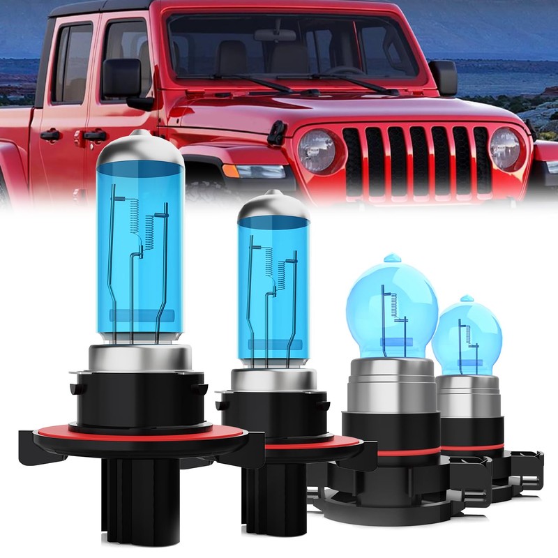 - 【Compatible with Jeep Gladiator Headlight Bulbs】LECCIBUB halogen headlights are perfectly compatible with Jeep Gladiator 2020 2021 2022.Reduce the risk of error warnings,radio static or flickering.You don't require additional encoders.The halogen headlights combo includes 2pcs 9008/H13 high low beam and 2pcs H16/5202 fog lights,totaling 4 Halogen bulbs in the package.