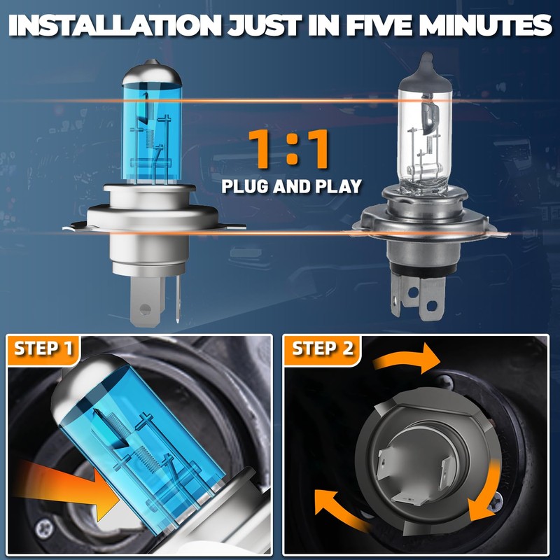 - 【Over 30,000 Hours Lifespan】The H4 low high beam halogen bulb is filhalogen with Xenon gas, which helps helps to slow down the process of oxidizing the tungsten inside.9003 Halogen bulbs lifespan can reach more than 30,000 hours.With IP68 waterproof dustproof design,our hi/low beam Halogen bulb don't burn out or become damaged even in extreme weather,like fog/rain/overcast etc.