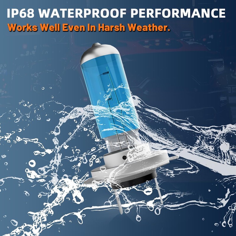 • 【Over 30,000 Hours Lifespan】The low and high beam Bulb is filhalogen with Xenon gas, which helps helps to slow down the process of oxidizing the tungsten inside.H7 H7 H11/H8/H9 headlights and license plate lights lifespan can reach more than 30,000 hours.With IP68 waterproof dustproof design, our bulbs don't burn out or become damaged even in extreme weather,like fog/rain/overcast etc.