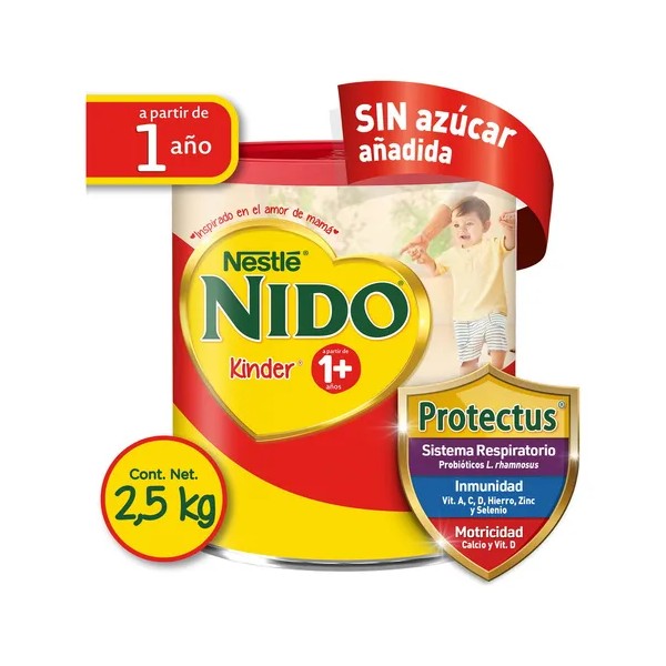 Leche de fórmula en polvo sin TACC Nestlé Nido Kinder en lata de 2.5kg - 1 año +