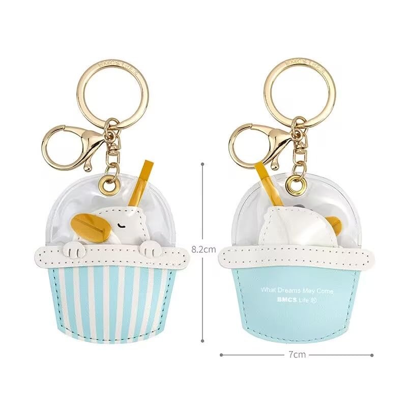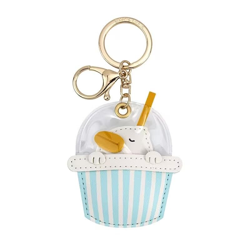 [LeChengMM] Creative and Funny Milk Tea Bubble Cup Hidden Cartoon Keychain Leather Keychain Rucksack Car Keychain Pendant (Duck-Feather)
