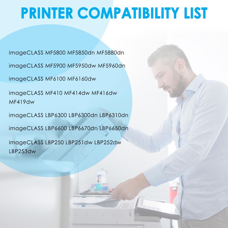 - Printer Compatibility: These toner cartridges are fully compatible for Canon i-SENSYS LBP251DW LBP252DW LBP253DW LBP6300 LBP6300DN LBP6310DN LBP6600 LBP6650 LBP6650DN LBP6670DN LBP6680X MF5840DN MF5850DN MF5880DN MF5940DN MF5950DW MF5960DN MF5980DW; Canon imageCLASS MF414DW MF416DW MF419DW MF6100 MF6160DW.