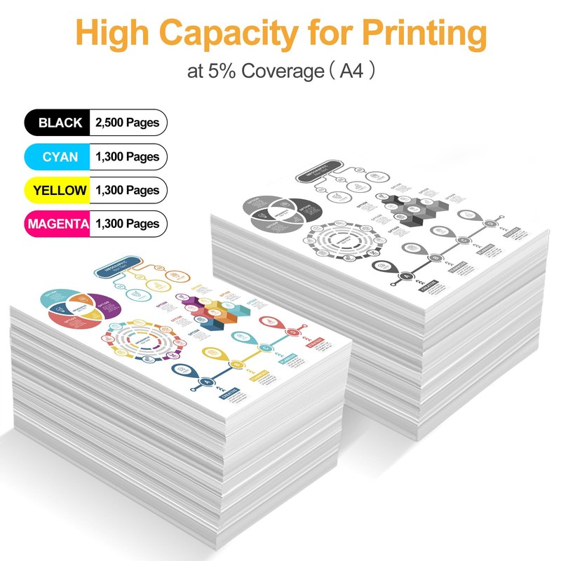 - 【High Page Yield】2,500 pages per black cartridge; 1,300 pages per color cartridge(A4, at 5% coverage)