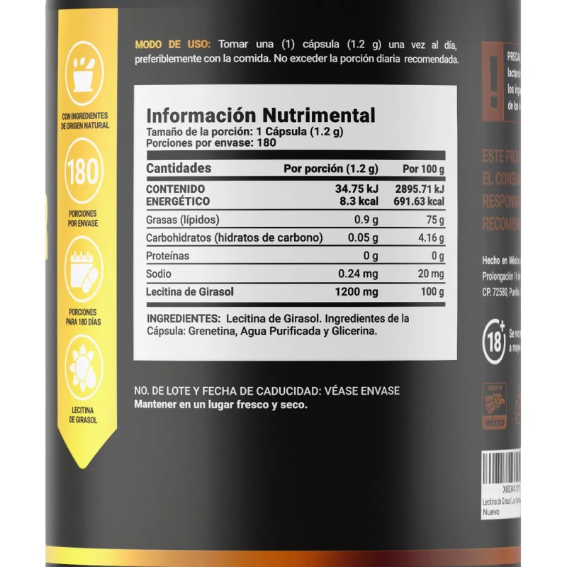 Lecitina D Girasol De 180 Cápsulas Sunflower Lecithin B Life