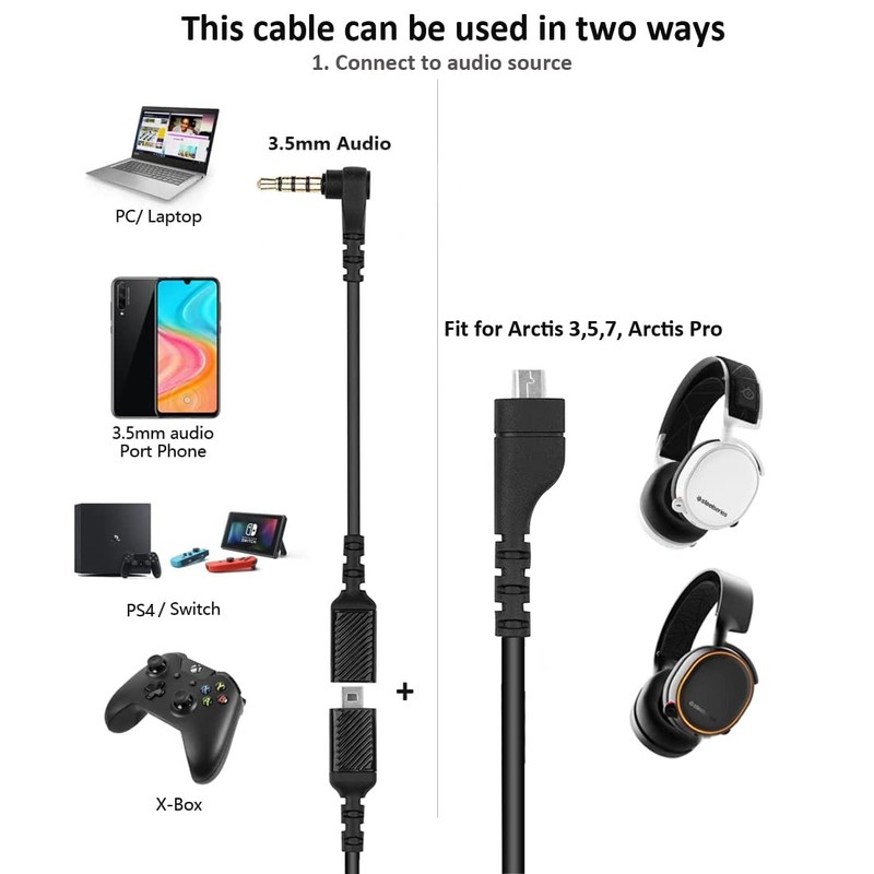 • 【Replacement Audio Cable】Work for SteelSeries Arctis 3, Arctis Pro Wireless, Arctis 5, Arctis 7, Arctis Pro Gaming Headset, PS4, Xbox One,Mac,PC,consoles, mobiles phone and tablets
