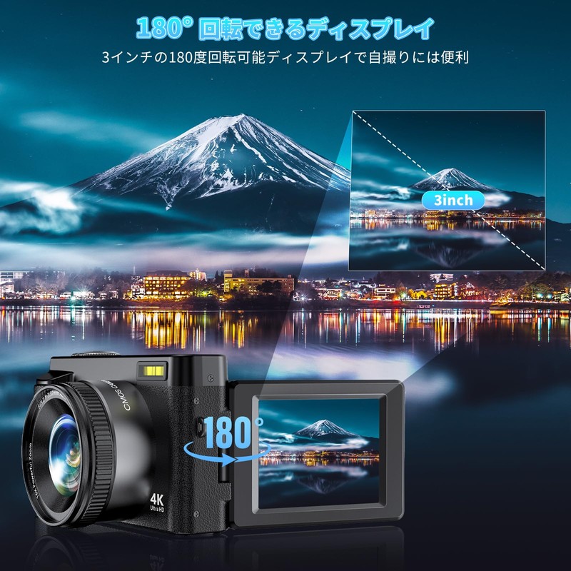 - High Performance 4K Digital Camera & 48 Megapixel & 8 Megapixel CMOS Sensor: This 4K camera allows even beginners to enjoy shooting. The video resolution is 3840 x 2160, known as 4K UHD, and the still image is 48 megapixels and has been achieved with unprecedented clarity. Equipped with an 8 megapixel CMOS image sensor, you can capture vivid images at an affordable price. Auto focus feature makes it easy to take beautiful and vivid photos. Built-in image stabilization, powerful algorithms recognize the subject clearly and maintain the screen stability to prevent shifting of focus and focus area overlap. It is also equipped with a variety of functions such as face recognition, beauty filter, and triple shooting, so you can capture a night view or a child's smile. It also comes with an LED light, so you can easily take pictures at night or in a dark room