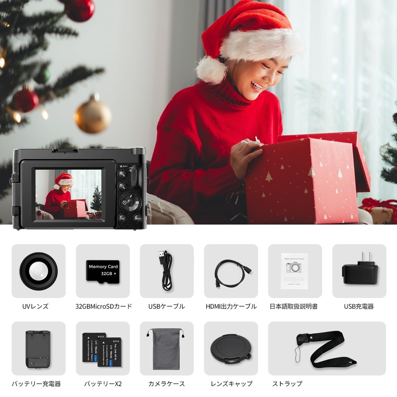 - 2 Extra Batteries & 32GB Micro SD Card: This digital camera comes with 2 high-capacity batteries. You don't have to worry about the remaining battery power while on the go, and you can shoot for a long time. Comes with a battery charger for convenient use. Various charging methods can be used for outdoor charging. Perfect for long shots of athletic events, recitals, seminars and concerts when shooting distant subjects. In addition, this product also comes with a 32 GB MicroSD card, so it can be used immediately upon arrival. Please note that this product supports up to 128GB Micro SD card. Professional camera case and hand strap are included, perfect for outdoor photography