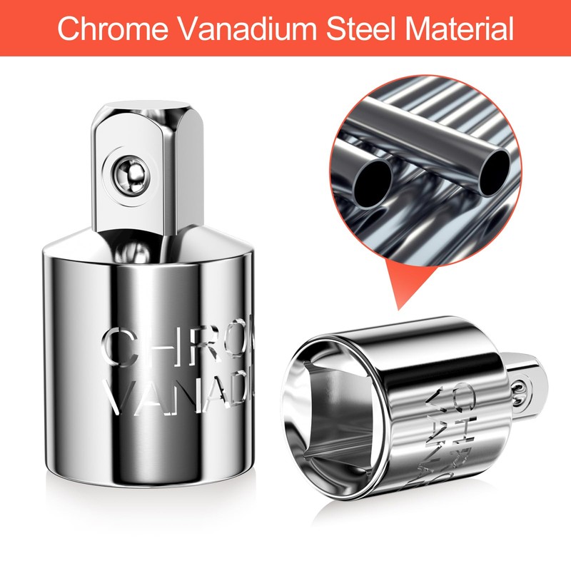 - High-quality material: the socket adapter is made of high-quality chrome vanadium steel and is chrome-plated overall, which has good wear resistance and corrosion resistance, is robust and durable and has a longer service life. The surface is subjected to a polishing process, which has a beautiful metallic luster and is more beautiful.