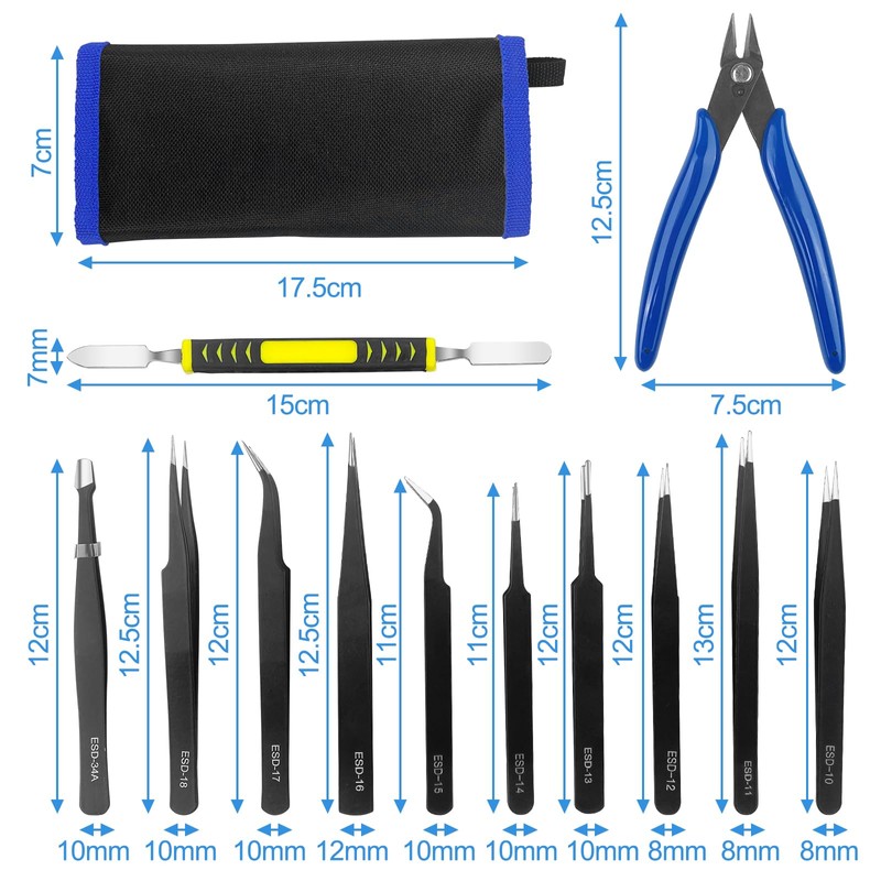 - Anti-static: The stainless steel tweezers set has a durable ESD coating, which helps to protect electronic devices from static electricity that can damage sensitive electronic devices.