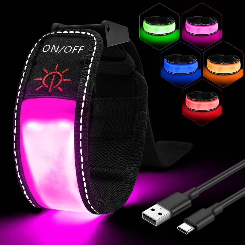 LED Armband for Running, Rechargeable Running Lights for Runners, 1 Pack Glow in The Dark LED Wristband for Sports Events, Reflective Gear Light Up Armbands for Night Safety (Pink)