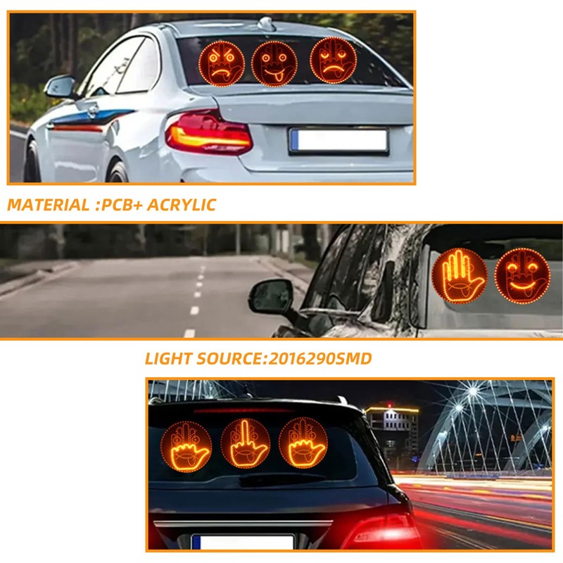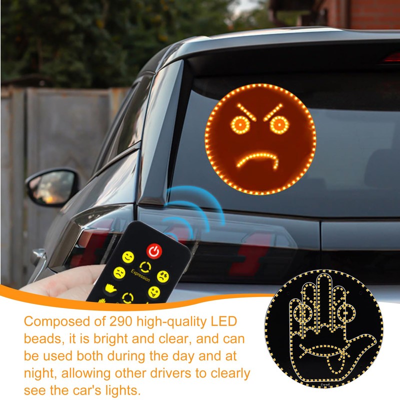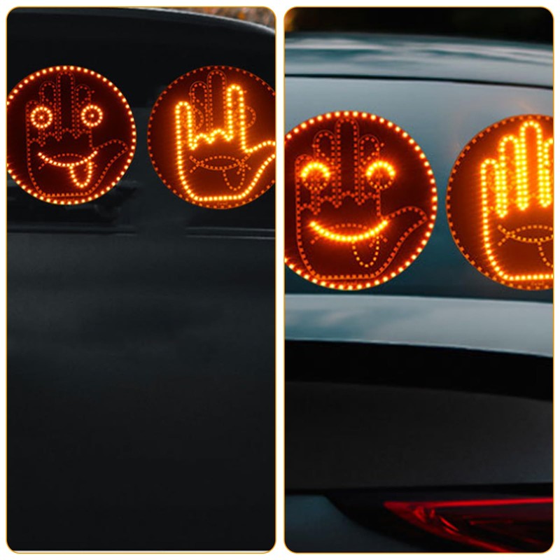 - 【2 In 1 verbessertem Design】In Kombination mit 4 Modi des Auto-Fingerlichts und 4 Modi des Ausdruckslichts hilft es, die Aufmerksamkeit anderer Fahrer zu erinnern und zu erregen und anderen Fahrern auf sichere und lustige Weise sofort Ihr Gefühl zu zeigen
