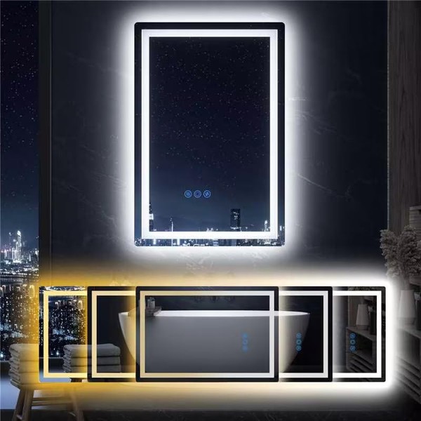 - Multiple Sizes Available: Choose from 6 versatile sizes to perfectly fit your bathroom space: 16x24, 24x32, 24x36, ,20x28, 28*36 or 36x72 inches. To ensure the best fit, please measure your space carefully. This LED bathroom mirror offers flexible mounting options and can be installed vertically or horizontally using just two hanging plates. It supports both plug-in and hardwired connections (professional installation recommended).