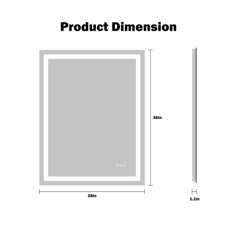 - 【Dimmable & Memory】 The brightness of this modern led mirror is dimmable, short press to turn the mirror light on/off while long press on the button can adjust the brightness of the mirror (10%-100%). With the UL listed LED power driver, this wonderful bathroom mirror are available for an excellent lighting experience. When the LED mirror is restarted after a power failure, it will return to the last use, no need to adjust again.