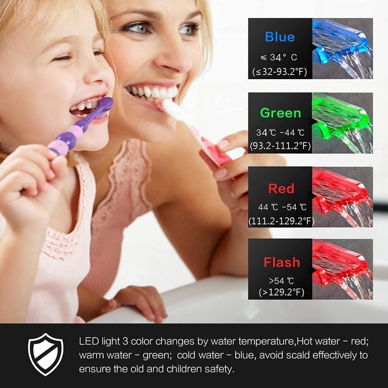 • 【Design of hydropower LED light】Our LED bathroom faucets use the most primitive water pressure to generate electricity. As long as the bathroom faucet is turned on, the current will be generated to illuminate the LED lamp. You don't have to think about installing batteries and wasting electricity bills