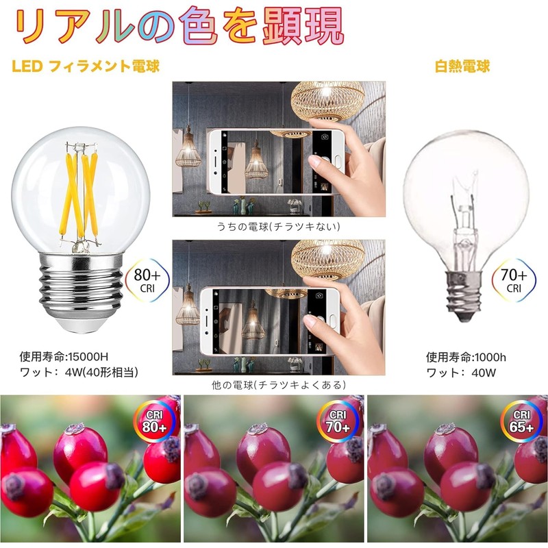 - High Color Rendering & Retro: The filament bulb has reached over Ra80 and reproduces the true color of objects naturally. The retro form of the Edison bulb remains as though it produces a warm ambiance that is not like an LED bulb. Perfect for any space that you want to create a calm atmosphere or relax
