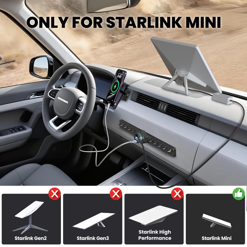 • 【Dual USB Ports: Charge Multiple Devices】 Besides powering Starlink Mini, the car charger includes USB-A (20V=2.25A) and USB-C (12V=1.5A) ports—no extra charger needed, boosting travel convenience.