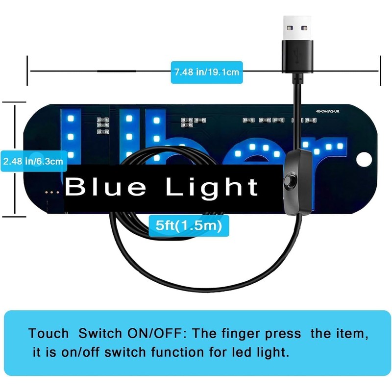 LED Car Sign Window Light USB Powered Adjustable Brightness Suction Cup Mount Touch Dimmer Windshield Decal for Enhanced Night Visibility and Safety (Blue)