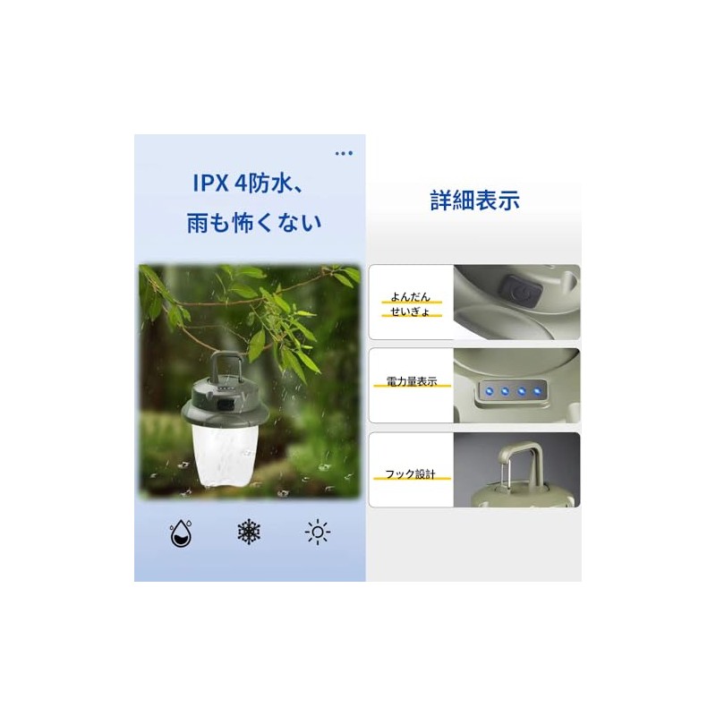 - USB Charging Camp Light: With a USB charging cable, the charging port is type-C, the camping light only takes 2 hours, and the usage time is 3-6 hours. Powered by 25%, 50%, 75%, and 100% LED. Product Size: 11.5 x 8.5 x 8.5 cm, Weight: 115g only
