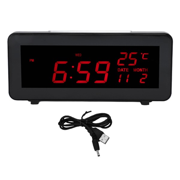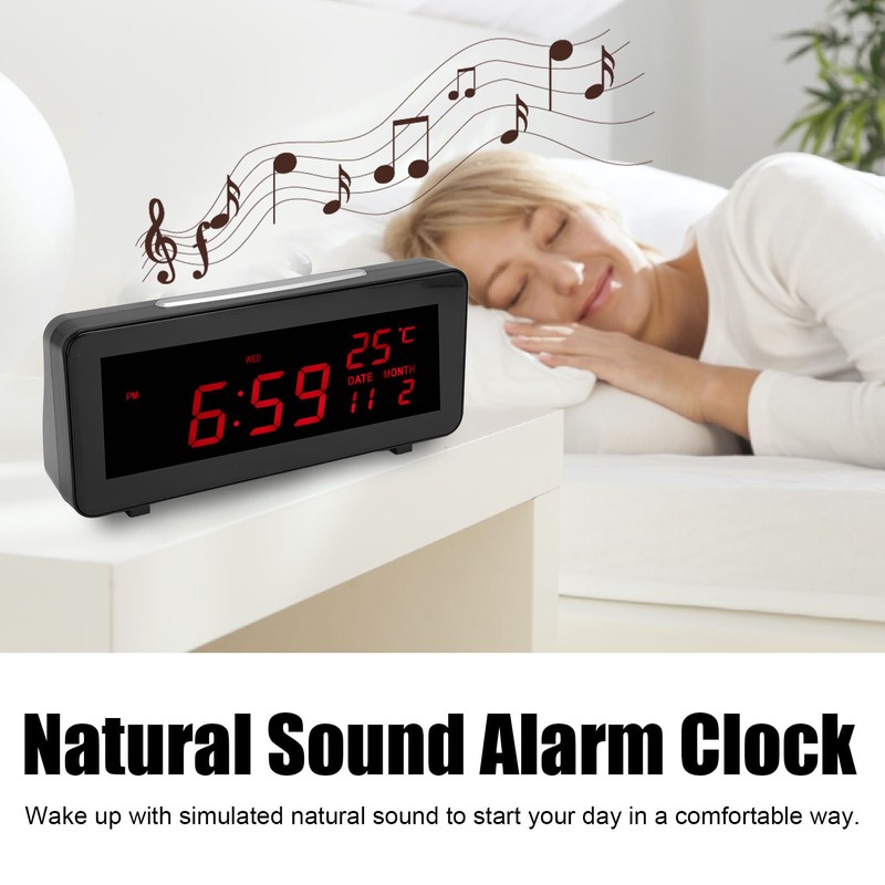 LED Clock Natural Sound Time Date Temperature Display Glowing Digital Alarm Clock for Bedroom Office Living Room