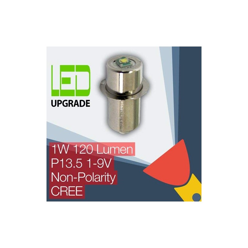 LED Conversion/Upgrade Bulb for Many Popular Torches/flashlights P13.5 Flange Universal Non-Polarity 1-9V 1W 120LM CREE. 50,000+ Hours!