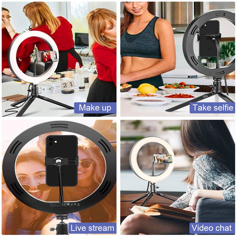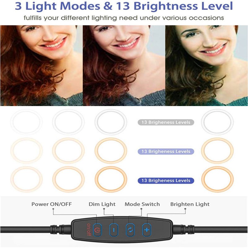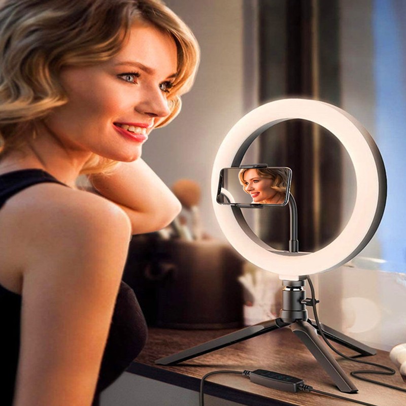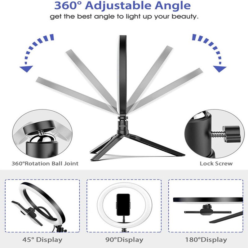 LED Desk Light Dimmable Live Streaming Selfie Tattoo Camera Ring Light with Mobile Rack